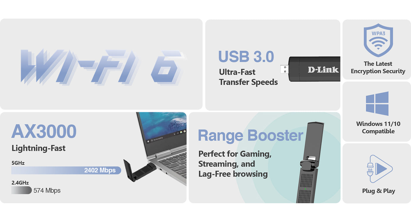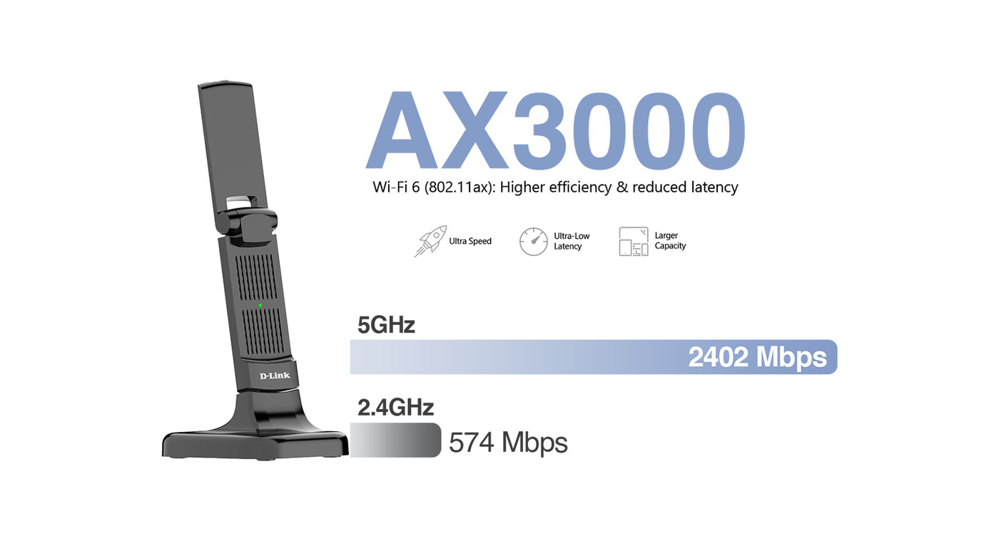 • Wi-Fi 6 technology for enhanced speeds of up to 3000 Mbps