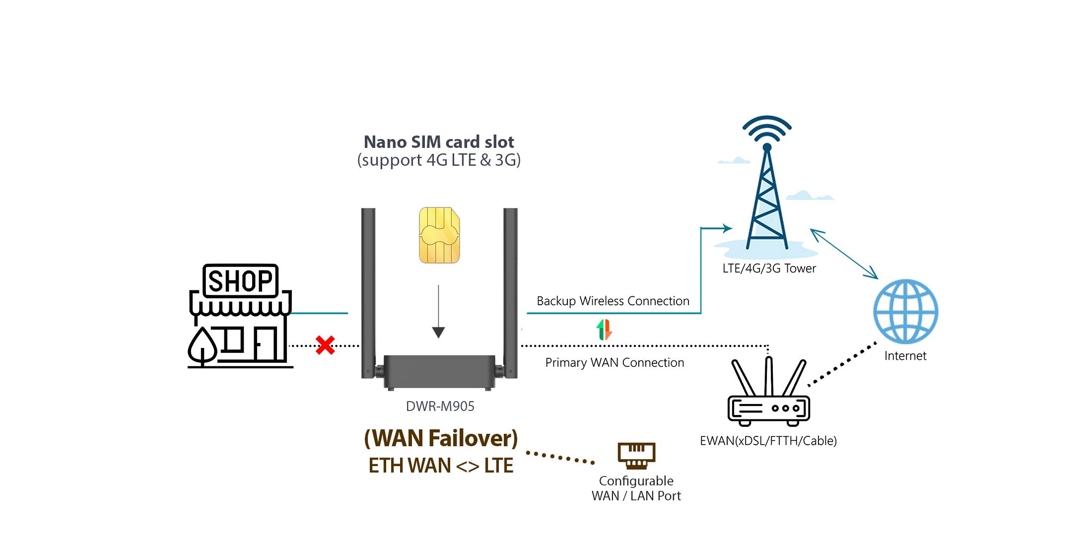 D-Link Mobile Wi-Fi Routers provide effortless, plug-and-play Wi-Fi. Enjoy robust, reliable internet access for your fast-paced lifestyle, whether you're using a Nano-SIM for immediate mobile Wi-Fi or a wired Ethernet connection for fixed setups. No complex configuration required.